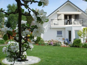 In einer ruhigen Straße gelegen, befindet sich das "Weiße Haus" mit der Ferienwohnung auf einem ca. 1000 m2 großen Grundstück.
